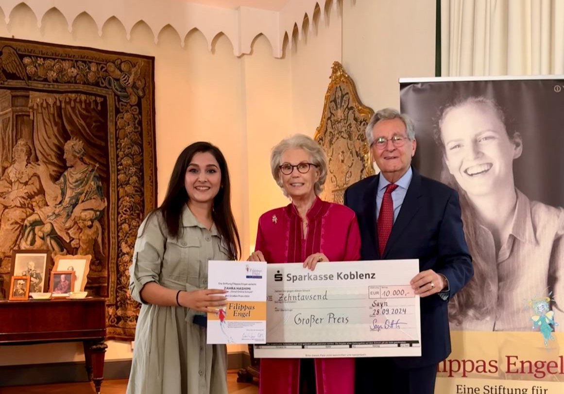 ermöglicht jungen Mädchen in Afghanistan durch die Omid Online School in Zusammenarbeit mit einem Netzwerk engagierter Lehrerinnen Zugang zur Bildung, die ihnen vom Taliban-Regime verwehrt wird. Zahra Hashimi erhält zusätzlich den 2024 erstmals vergebenen Filippas Engel Alumni Preis der ehemaligen Preisträger, dotiert mit 3.000 Euro